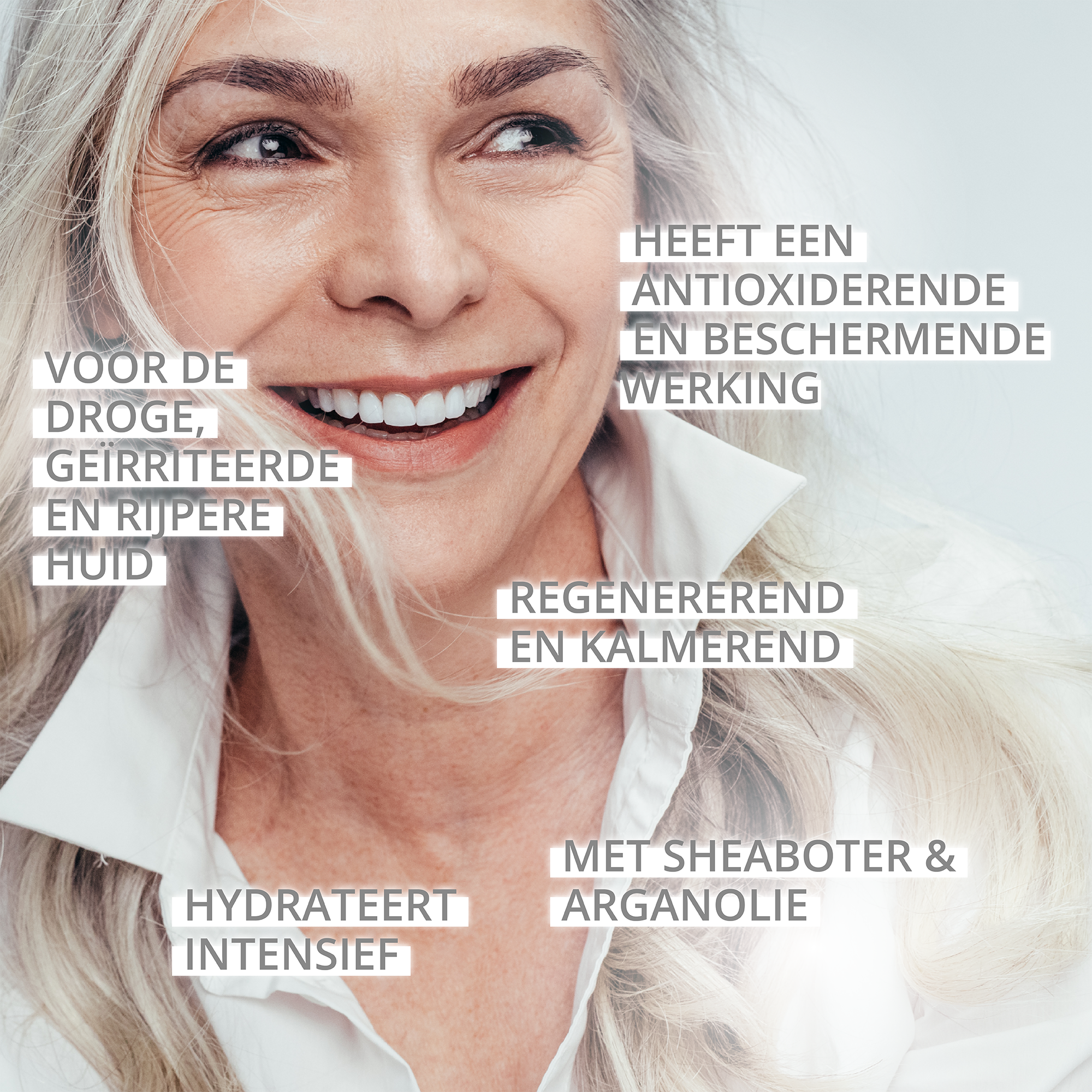 Breng s morgens en s avonds een hoeveelheid ter grootte van een erwt aan op het gelaat / decolleté en masseer zachtjes in.